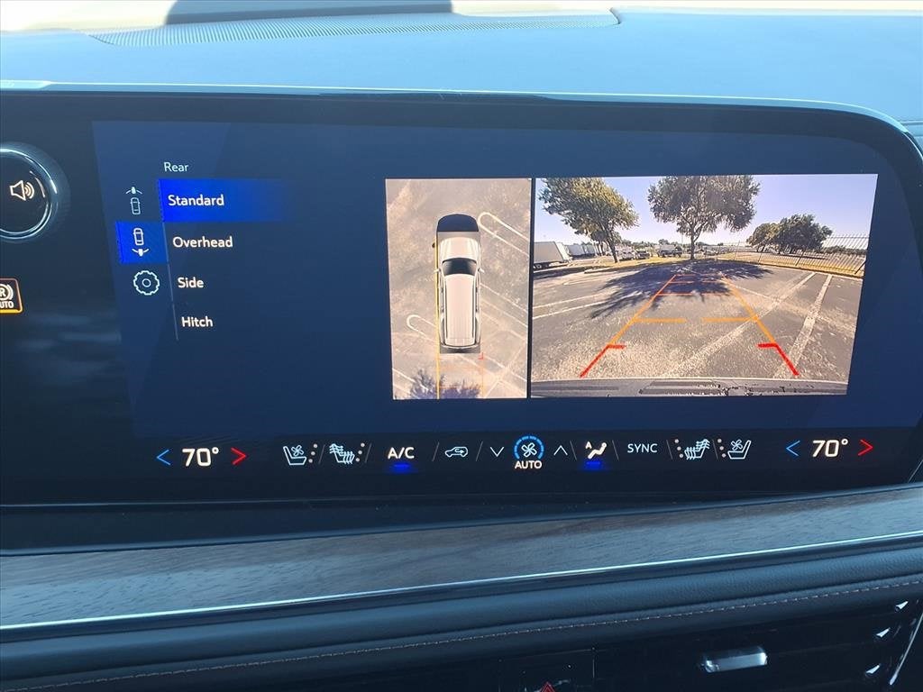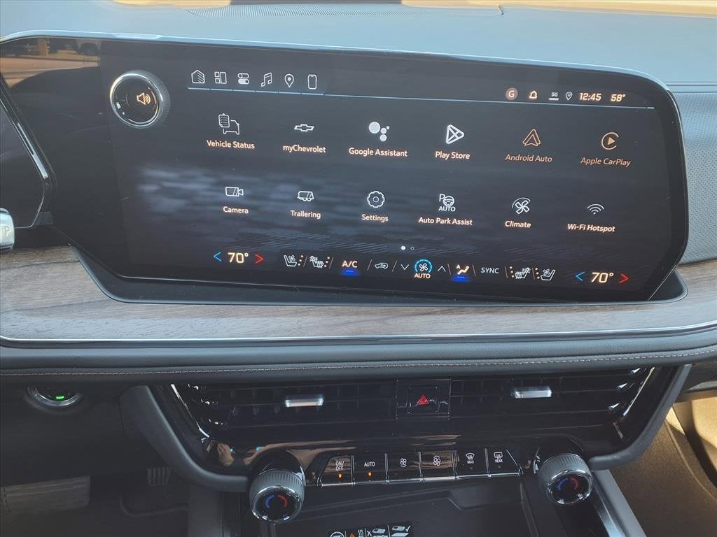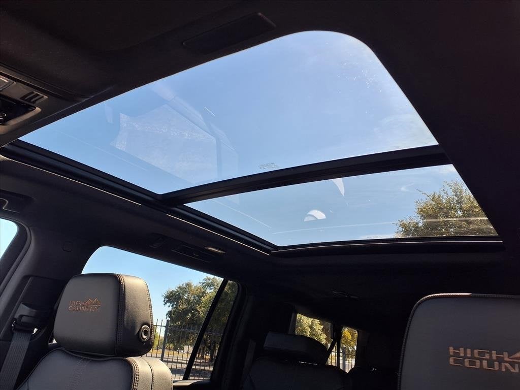 Advanced Trailering Package (Smart Trailer Integration Indicator), High Country Deluxe (Air Ride Adaptive Suspension, Dual-Pane Power Panoramic Sunroof, and Power-Retractable Assist Steps), Max Trailering Package (2-Speed Active Electronic AutoTrac Transfer Case, Extra Capacity Cooling System, Hill Descent Control, and Integrated Trailer Brake Controller), 10 Speakers, 15 Diagonal Multi-Color Head-Up Display, 3.23 Rear Axle Ratio, 3rd Row 60/40 Power-Folding Split-Bench, 3rd row seats: split-bench, 4-Way Power Driver Lumbar Seat Adjuster, 4-Way Power Front Passenger Lumbar Seat Adjuster, 4-Wheel Disc Brakes, 8-Way Power Driver Seat Adjuster, 8-Way Power Front Passenger Seat Adjuster, ABS brakes, Adaptive suspension, Air Conditioning, Alloy wheels, AM/FM radio: SiriusXM with 360L, Apple CarPlay/Android Auto, Auto High-beam Headlights, Auto-dimming door mirrors, Auto-dimming Rear-View mirror, Auto-leveling suspension, Automatic temperature control, Brake assist, Bumpers: body-color, Compass, Delay-off headlights, Driver door bin, Driver vanity mirror, Dual Exhaust System, Dual front impact airbags, Dual front side impact airbags, Electronic Stability Control, Emergency communication system: OnStar Services capable, Exterior Parking Camera Rear, Four wheel independent suspension, Front anti-roll bar, Front Bucket Seats, Front Center Armrest, Front dual zone A/C, Front fog lights, Front LED Fog Lamps, Front reading lights, Fully automatic headlights, Garage door transmitter, Heads-Up Display, Heated 2nd Row Outboard Seats, Heated door mirrors, Heated front seats, Heated Power-Adjustable Outside Mirrors, Heated rear seats, Heated Steering Wheel, Heated steering wheel, Illuminated entry, Interior Camera, LED Tail Lamps, Low tire pressure warning, Magnetic Ride Control Suspension, Memory seat, Memory Settings, Navigation system: Google built-in compatibility (select service plan required, terms and limitations apply), Occupant sensing airbag, Outside temperature display, Overhead airbag, Overhead console, Panic alarm, Passenger door bin, Passenger vanity mirror, Perforated Leather Seating Surfaces, Power door mirrors, Power driver seat, Power Liftgate, Power passenger seat, Power Release 2nd Row Bucket Seats, Power steering, Power windows, Power-Sliding Center Floor Console, Radio data system, Radio: 17.7 Diagonal Advanced Color LCD Display, Rain sensing wipers, Rear air conditioning, Rear anti-roll bar, Rear Power Liftgate, Rear reading lights, Rear window defroster, Rear window wiper, Remote keyless entry, Security system, Speed control, Speed-sensing steering, Split folding rear seat, Spoiler, Steering wheel memory, Steering wheel mounted audio controls, Tachometer, Telescoping steering wheel, Tilt steering wheel, Traction control, Trip computer, Turn signal indicator mirrors, Universal Home Remote, Variably intermittent wipers, Ventilated front seats, Voltmeter, Wireless Apple CarPlay/Wireless Android Auto, and Wireless Phone Charging.