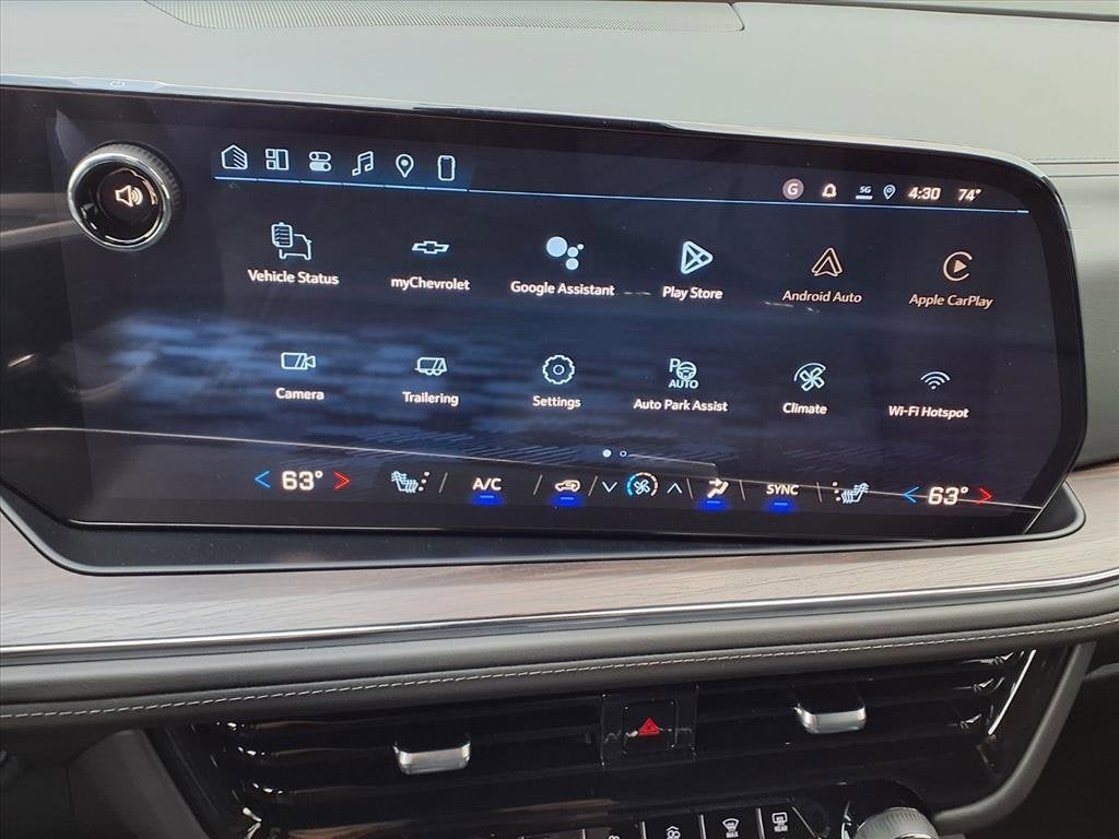 Advanced Trailering Package (Blind Zone Steering Assist with Trailering, Hitch View with Pan/Zoom Image Adjustment, and Smart Trailer Integration Indicator), Comfort Package (2nd Row Power Release 60/40 Split-Folding Bench Seat, 3rd Row 60/40 Power-Folding Split-Bench Seat, Bose 10-Speaker Centerpoint Surround Audio System Feature, Heated 2nd Row Outboard Seats, Heated Steering Wheel, LED Headlamps with LED Daytime Running Lamps, LED Tail Lamps, Memory Settings, and Outside Heated Power-Adjustable Mirrors), Luxury Package (Auto-Dimming Inside Rear-View Mirror, Front LED Fog Lamps, and Universal Home Remote), Max Trailering Package (2-Speed Active Electronic AutoTrac Transfer Case, Hill Descent Control, and Integrated Trailer Brake Controller), 4WD, Jet Blk Lth-Appointed Fro Leather, 1st and 2nd Row Color-Keyed Carpeted Floor Mats, 2-Way Power Driver Lumbar Seat Adjuster, 2-Way Power Front Passenger Lumbar Seat Adjuster, 3-Spoke Wrapped Steering Wheel, 3.23 Rear Axle Ratio, 3rd Row Manual 60/40 Split-Folding Bench Seats, 3rd row seats: split-bench, 4-Wheel Disc Brakes, 6 Speakers, 6-Speaker Audio System Feature, 8-Way Power Driver Seat Adjuster, 8-Way Power Front Passenger Seat Adjuster, ABS brakes, Air Conditioning, Alloy wheels, AM/FM radio: SiriusXM with 360L, Apple CarPlay/Android Auto, Auto High-beam Headlights, Automatic temperature control, Brake assist, Bumpers: body-color, Color-Keyed Carpeting Floor Covering, Compass, Delay-off headlights, Driver door bin, Driver vanity mirror, Dual front impact airbags, Dual front side impact airbags, Electronic Stability Control, Emergency communication system: OnStar and Chevrolet connected services capable, Exterior Parking Camera Rear, Floor Console with Storage Area, Four wheel independent suspension, Front anti-roll bar, Front Bucket Seats, Front Center Armrest, Front dual zone A/C, Front reading lights, Frontal Driver and Outboard Passenger Airbags, Fully automatic headlights, Heated door mirrors, Heated Driver and Front Passenger Seats, Heated front seats, Illuminated entry, Interior Camera, Key Card, Leather-Appointed Seat Trim, Low tire pressure warning, Memory seat, Memory Settings For Driver, Navigation system: Google built-in compatibility (select service plan required, terms and limitations apply), Occupant sensing airbag, Outside temperature display, Overhead airbag, Overhead console, Panic alarm, Passenger door bin, Passenger vanity mirror, Power door mirrors, Power driver seat, Power Liftgate, Power passenger seat, Power Release 2nd Row Bucket Seats, Power steering, Power windows, Premium audio system: Chevrolet Infotainment 3 Premium, Premium Smooth Ride Suspension, Radio data system, Radio: 17.7 Diagonal Advanced Color LCD Display, Rain sensing wipers, Rear air conditioning, Rear anti-roll bar, Rear Power Liftgate, Rear reading lights, Rear seat center armrest, Rear window defroster, Rear window wiper, Remote keyless entry, Remote Start, Security system, SiriusXM with 360L Trial Subscription, Speed control, Speed-sensing steering, Split folding rear seat, Spoiler, Steering wheel mounted audio controls, Tachometer, Telescoping steering wheel, Tilt steering wheel, Traction control, Trip computer, USB Ports, Variably intermittent wipers, Voltmeter, Wheels: 18 x 8.5 Bright Silver Painted Aluminum, and Wireless Phone Charging.