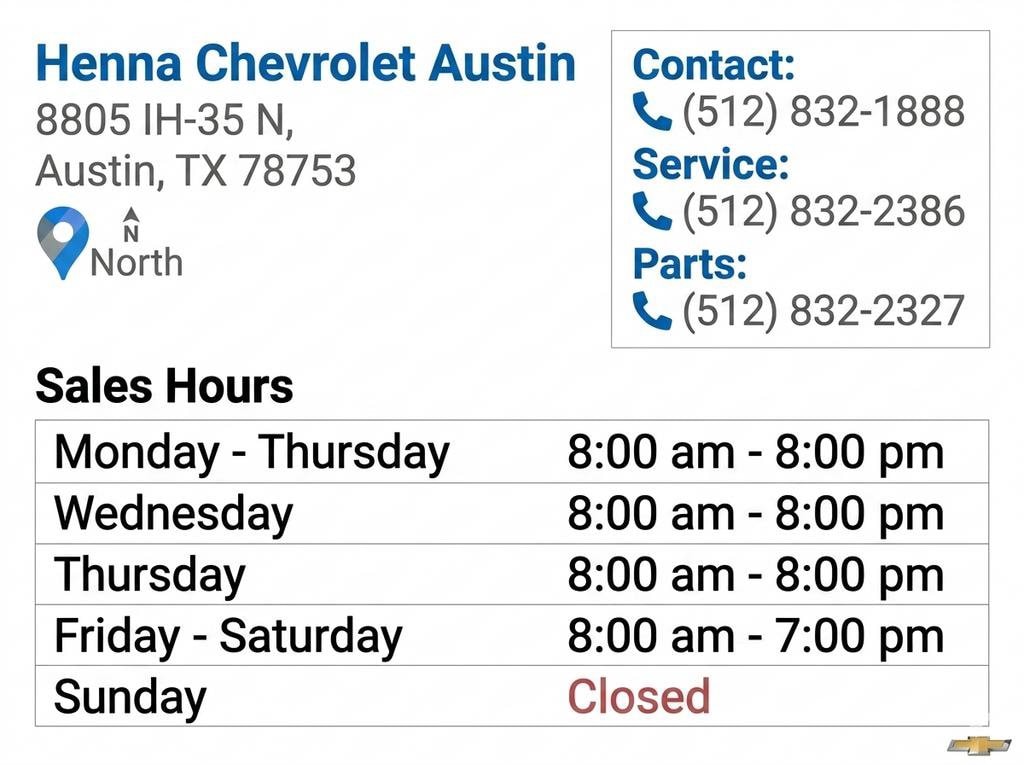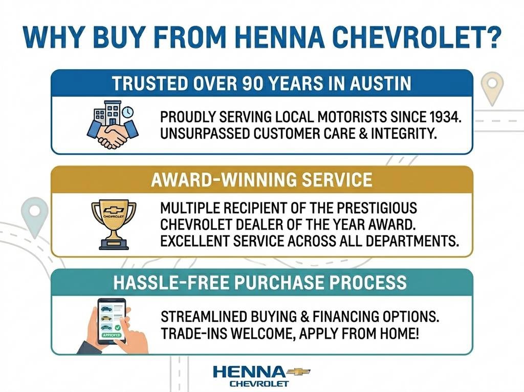 Henna Chevrolet is dedicated to your satisfaction before, during, and after your purchase. We'll go the extra mile to take care of you.