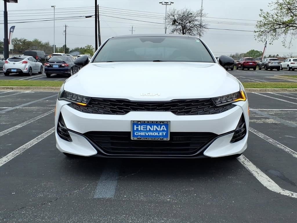 Discover the thrilling performance and sophisticated style of the 2023 Kia K5 GT. This exceptional sedan is a true testament to Kia's commitment to delivering a driving experience that exceeds expectations.- Glacial White Pearl exterior with a sleek and aerodynamic design- Powerful 2.5L turbocharged engine that delivers an exhilarating 290 horsepower- Smooth and responsive 8-speed dual-clutch transmission for seamless acceleration- Impressive fuel efficiency, with an EPA-estimated 24 mpg in the city and 32 mpg on the highwayThe 2023 Kia K5 GT is more than just a stunning vehicle; it's a gateway to a driving experience that will captivate your senses. Slip behind the wheel and feel the rush of power as you take command of the road. The sport-tuned suspension and precise steering provide an unparalleled level of control, allowing you to navigate curves and highways with confidence.Inside, the K5 GT offers a refined and well-appointed cabin that caters to your every need. Indulge in the comfort of the heated sport bucket seats, wrapped in premium SynTex upholstery. The 10.25-inch touchscreen display puts cutting-edge technology at your fingertips, seamlessly integrating your smartphone through Apple CarPlay and Android Auto.Safety is also a top priority in the K5 GT, with a comprehensive suite of advanced driver assistance features, including Forward Collision-Avoidance Assist, Lane Keeping Assist, and Blind-Spot Monitoring. These cutting-edge systems work tirelessly to help keep you and your loved ones secure on the road.Whether you're seeking a thrilling daily commute or a weekend getaway companion, the 2023 Kia K5 GT is the perfect choice. Its uncompromising performance, refined design, and advanced technology make it a standout in the midsize sedan segment.We invite you to experience the exceptional 2023 Kia K5 GT for yourself. Visit our showroom today and let our knowledgeable team guide you through all the features and capabilities that make this vehicle a true standout. Discover the joy of driving, redefined.